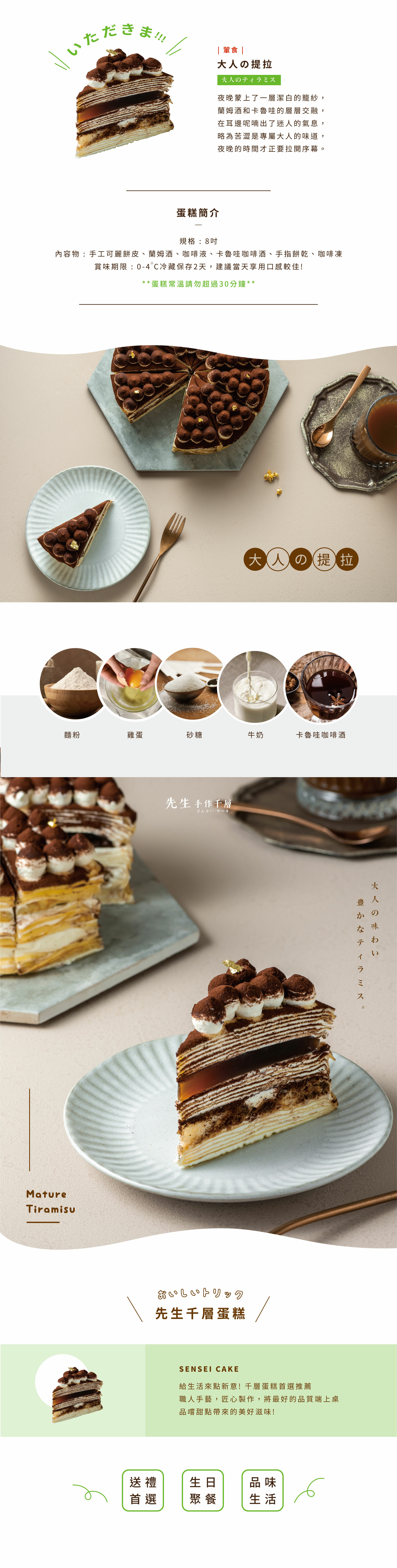 ❝以香甜蘭姆酒結合卡魯哇咖啡酒增加香氣,交織出更加成熟的大人風味,手指餅乾和咖啡凍增加更多層次的口感,適合今晚想來點不一樣的你。❞